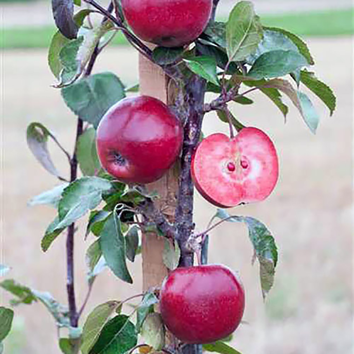 • Яблуня "Байя Маріса" - німецький сорт яблуні. Сорт червоном'якотної яблуні Байя Маріса став результатом довгої роботи селекціонерів, адже перед ними було поставлено завдання вивести не просто сорт яблук із привабливими зовнішніми характеристиками, а сорт яблуні із червоною м'якоттю та високою дегустаційною оцінкою.