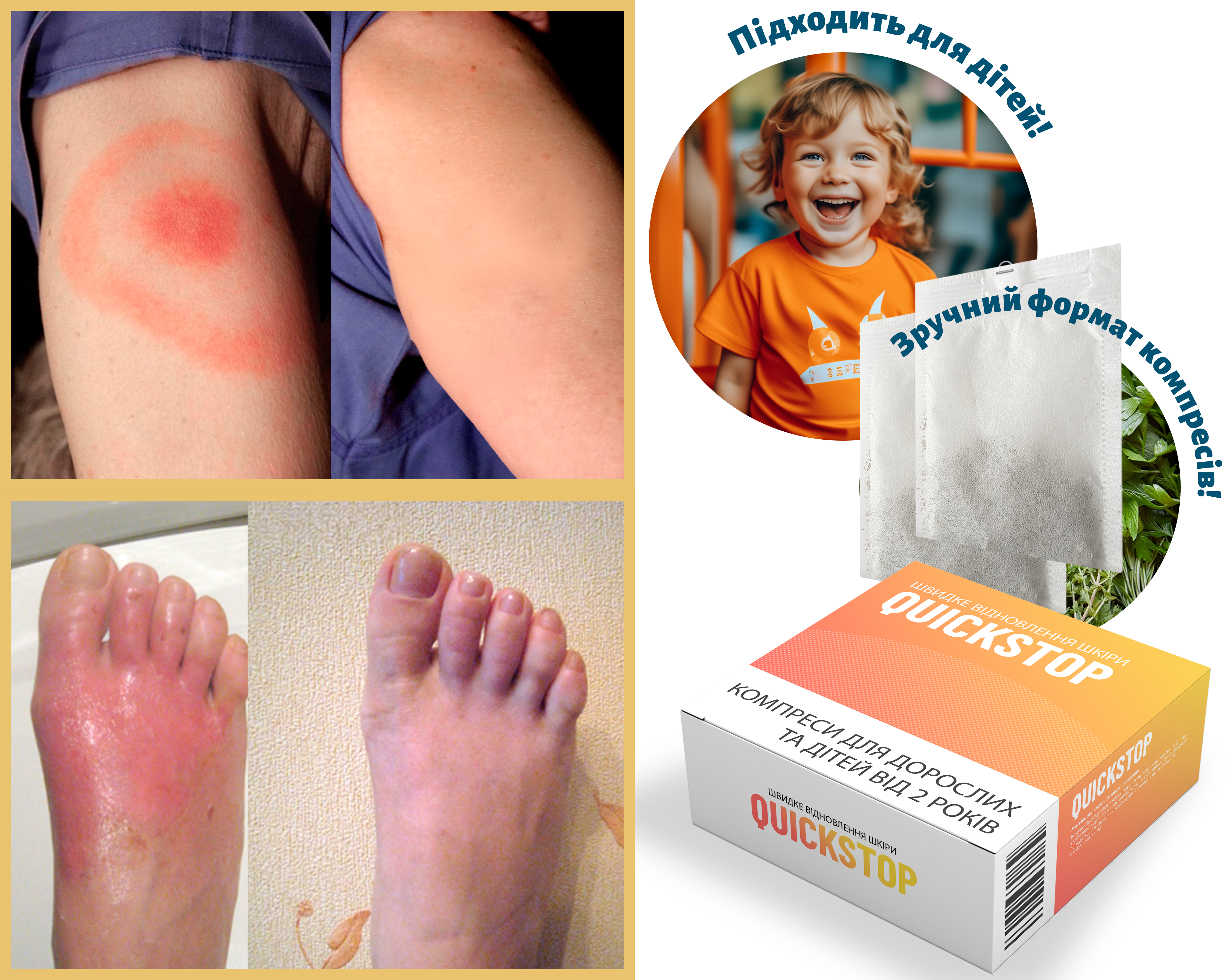 QuickStop — компреси миттєвої дії, які ефективні при порізах, укусах, опіках та інших травмах шкіри!