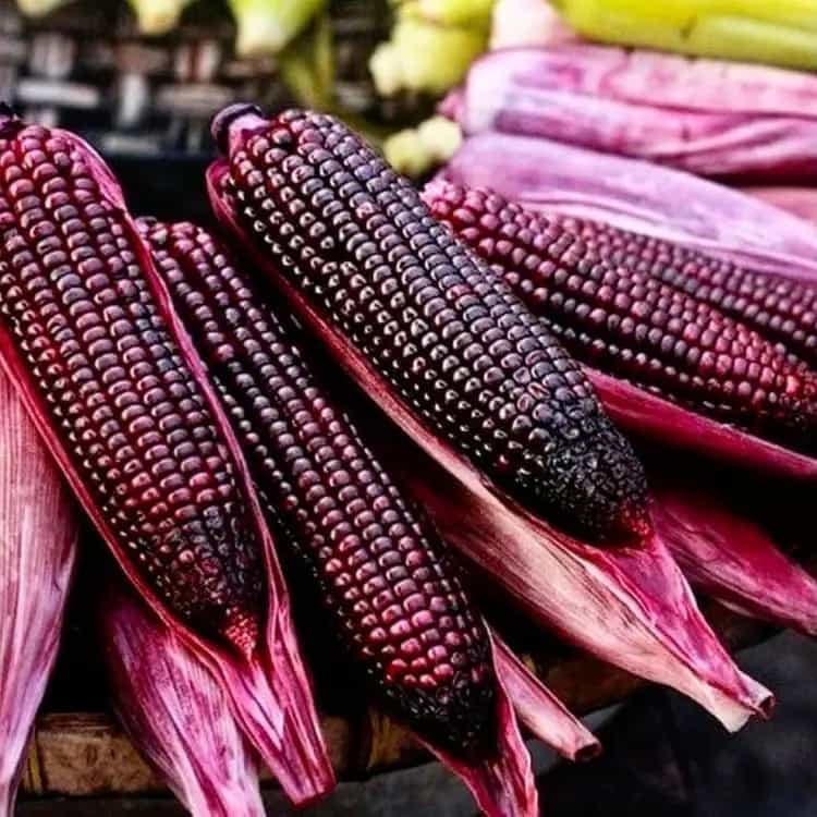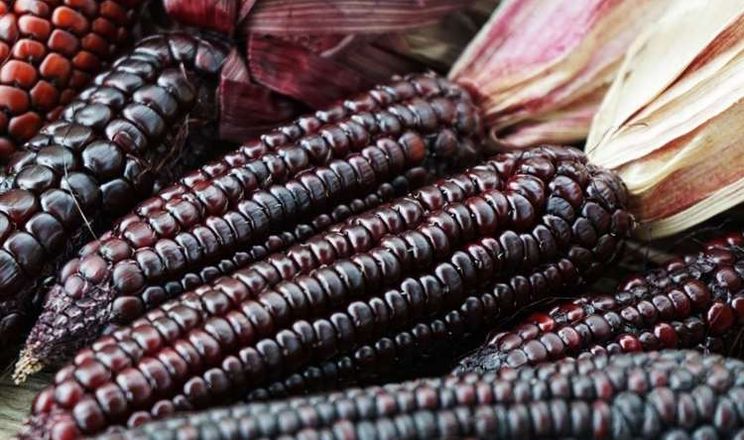 Зерна з фіолетово-синім кольором  мають лікувальні властивості, адже містять антиоксиданти та антоціани. Численні дослідження показали, що фенольні сполуки зерен фіолетової кукурудзи мають потужні антиоксидантні, протизапальні, антимутагенні та антиканцерогенні властивості.