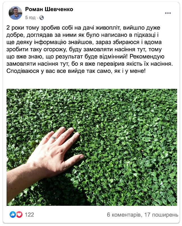 Уже як 17 років ми втілюємо маленькі мрії і грандіозні плани. У нас можна знайти буквально все, що пов'язано с саджанцями. Ми продаємо за справедливою ціною і надаємо гарантію, так як вважаємо, що онлайн-шопінг повинен бути максимально зручним і безпечним. І кожен раз, коли хтось натискає «Купити», ми розуміємо, що робимо потрібну справу.
