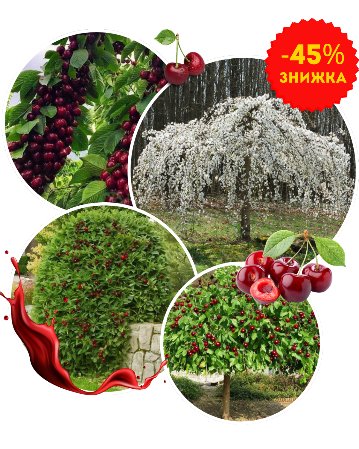 В даний час ми пропонуємо знижку -60% на саджанці черешні "Плакуча". Це унікальна можливість придбати високоякісні рослини за доступною ціною, щоб прикрасити свій сад та отримати багатий урожай.